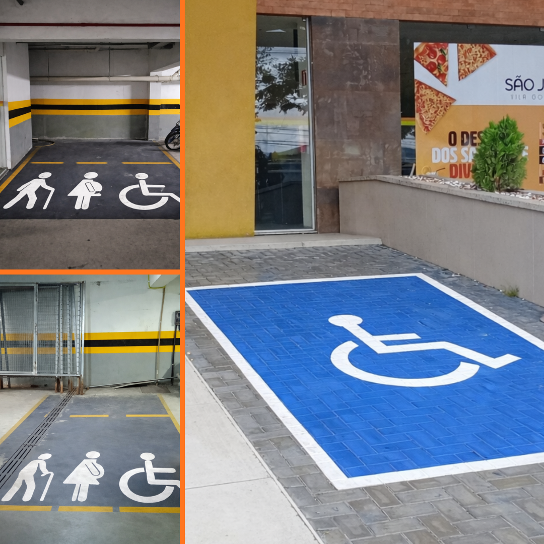 rampas de acesso, elevadores, cadeiras de rodas, estacionamento exclusivo e